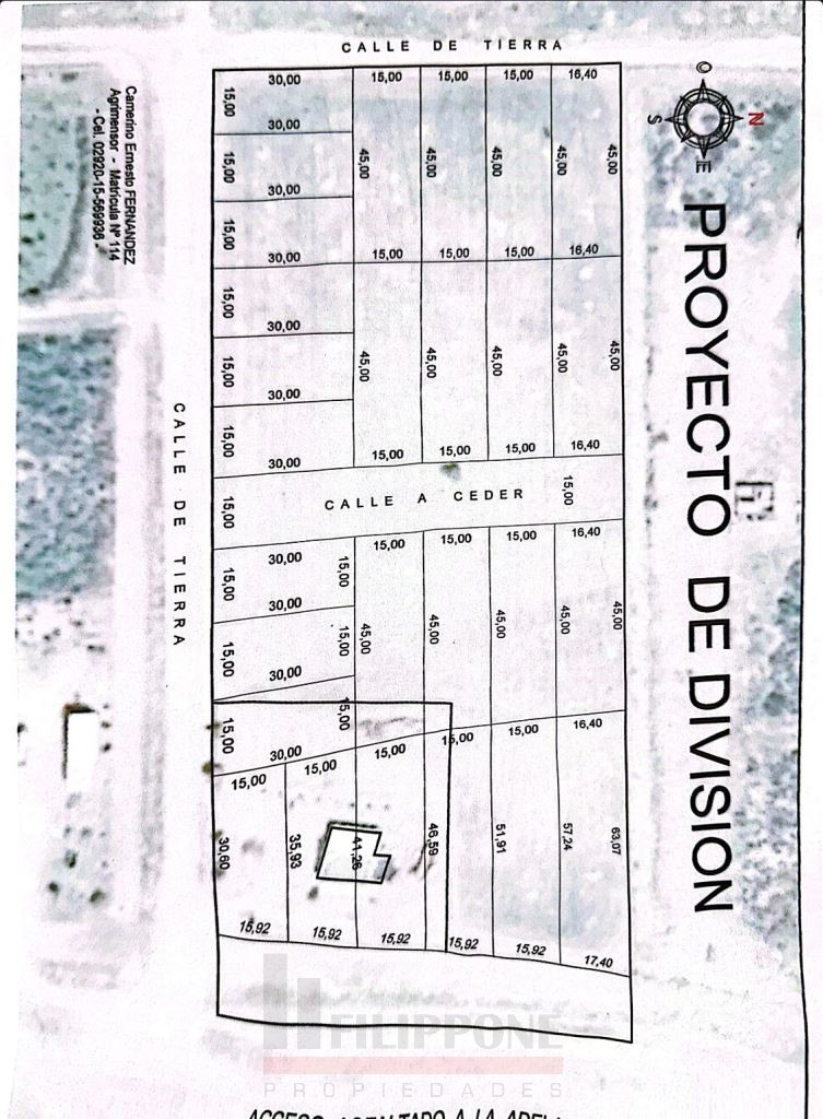 ANTEPROYECTO APROBADO PARA LOTEAR en 22 lotes. Estos lotes con superficies que irían entre los 450m2 y 675m2 con Frentes de 15m.
