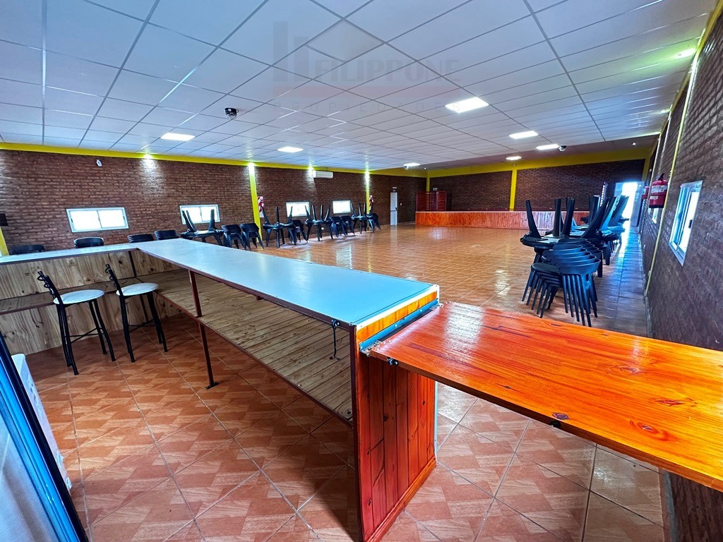 un Fabuloso salón para todo tipo de eventos (fiestas de cumpleaños, casamientos, eventos empresariales, espectáculos, etc) contando con gran escenario, cocina, sector contiguo a la cocina con varias parrillas y asadores, baños, sala para cambiarse (vestidor), buenas instalaciones lumínicas, además luces de colores. Impecable. Capacidad para más de 200 personas. Posee 11m de ancho por 20m de largo con un escenario de 9m x 3,4m. Gran playa de estacionamiento dentro del predio para un centenar de vehículos.